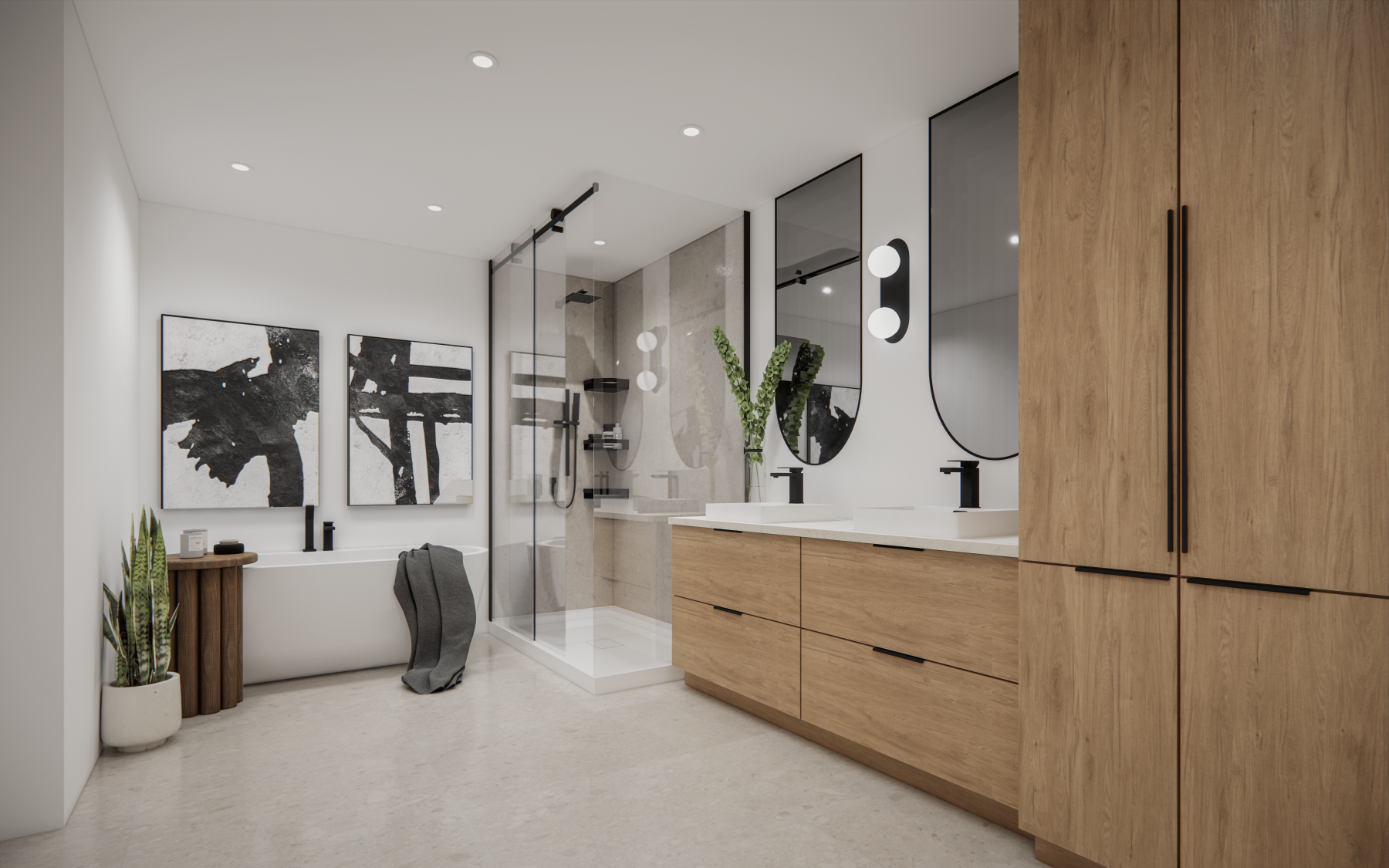 - Douche en céramique et bain autoportant
