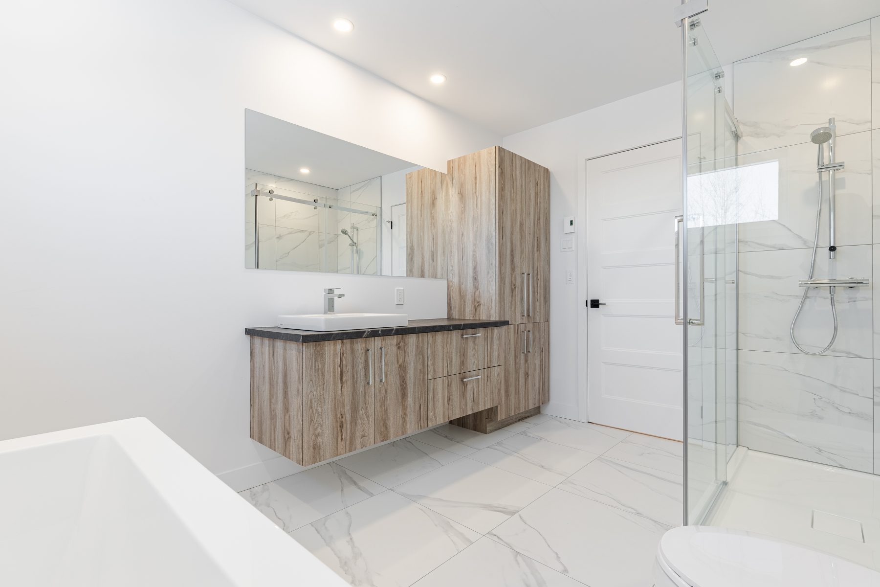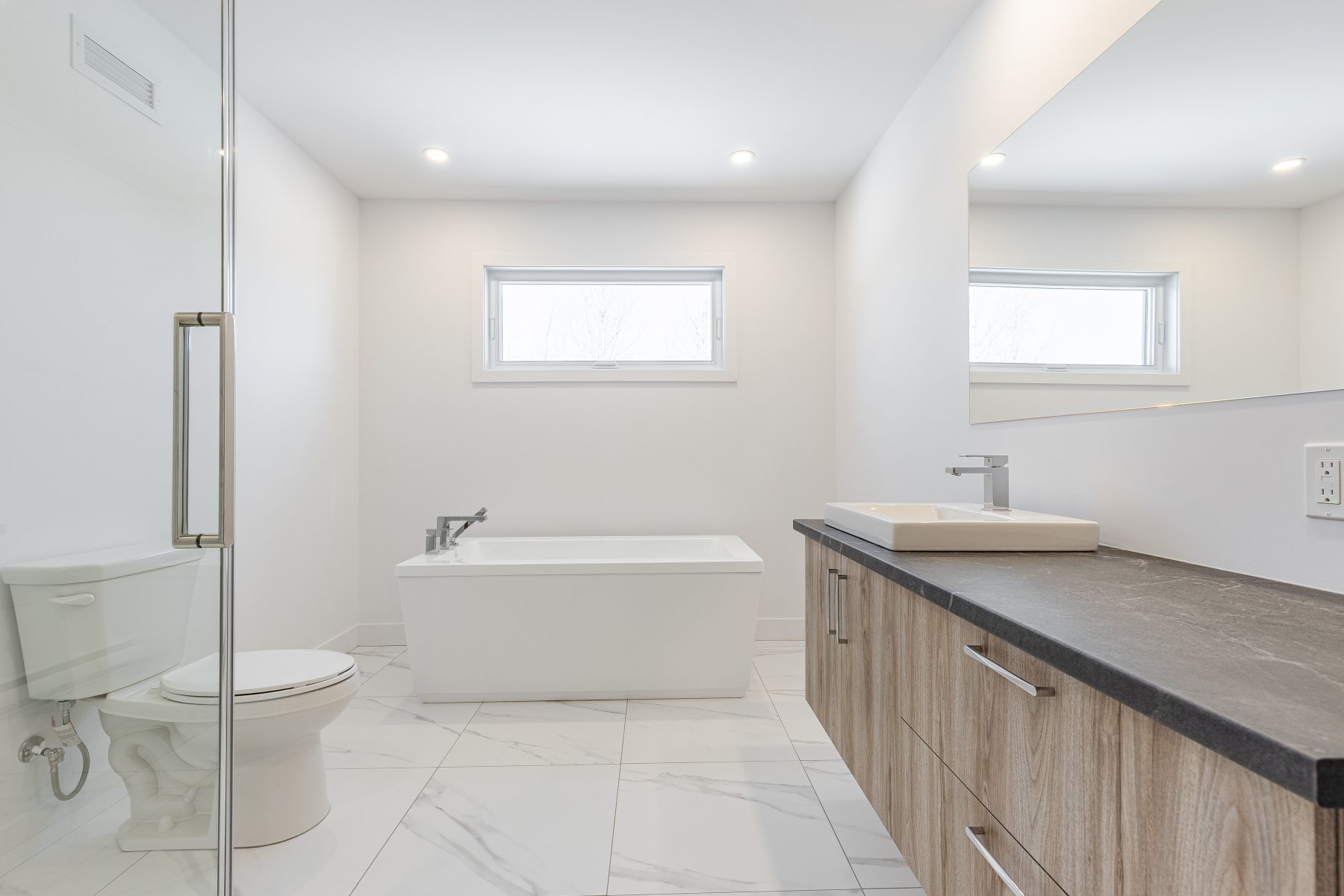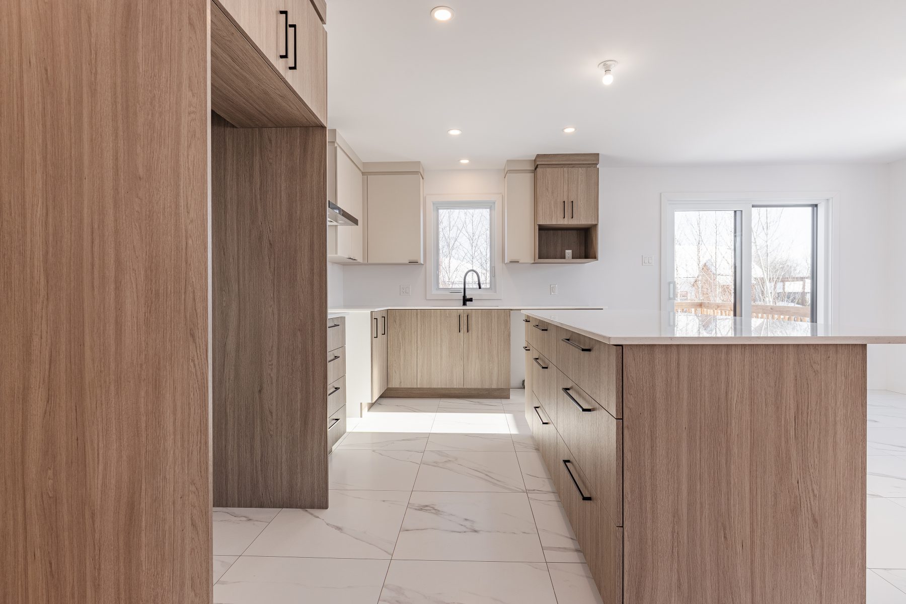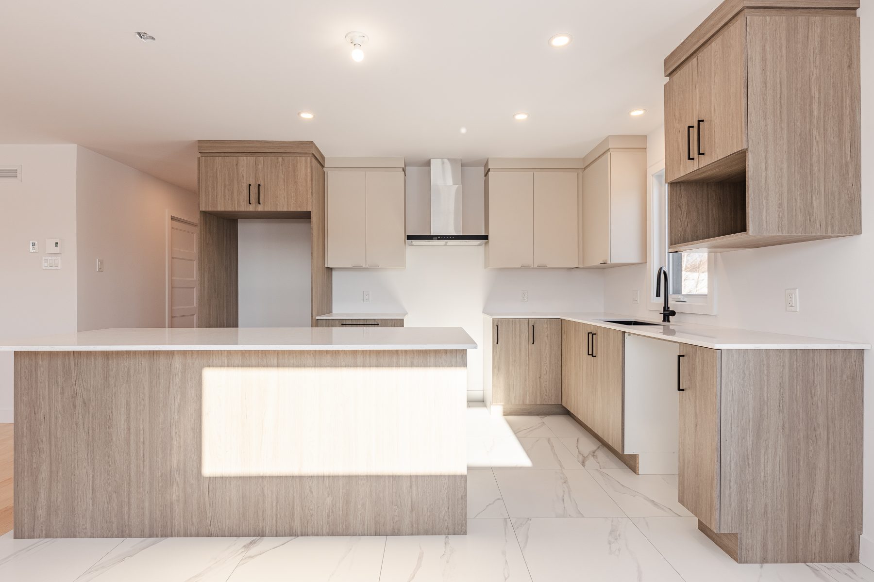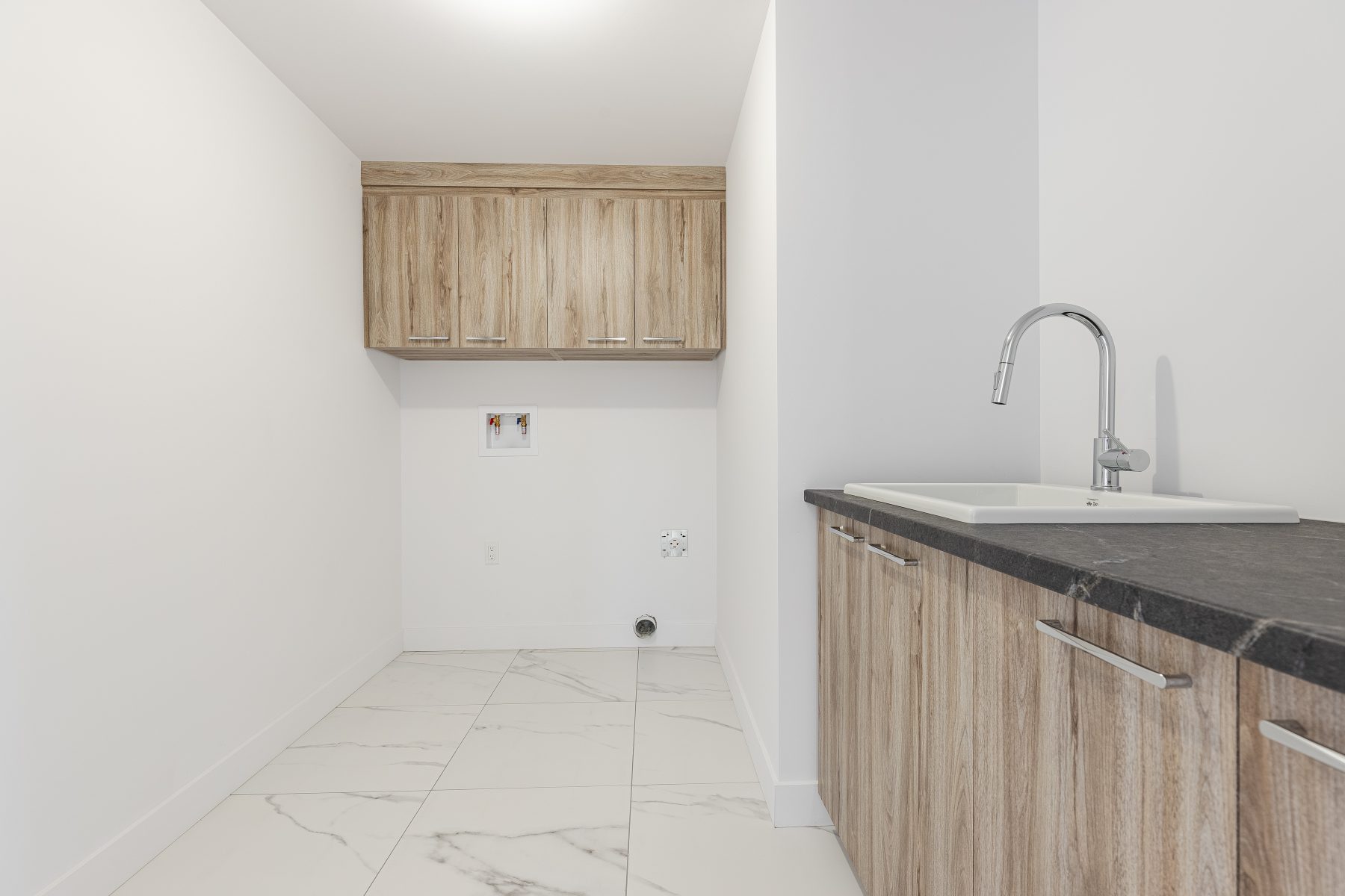 Possibilité de trois à cinq chambres à coucher, 2 salles de bain complètes, armoire de mélamine comptoir de quartz.
