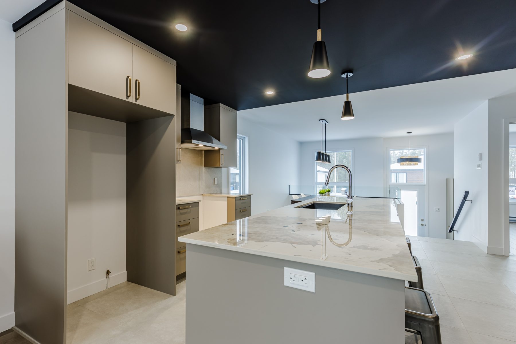 - Grande cuisine avec îlot central et beaucoup de rangement