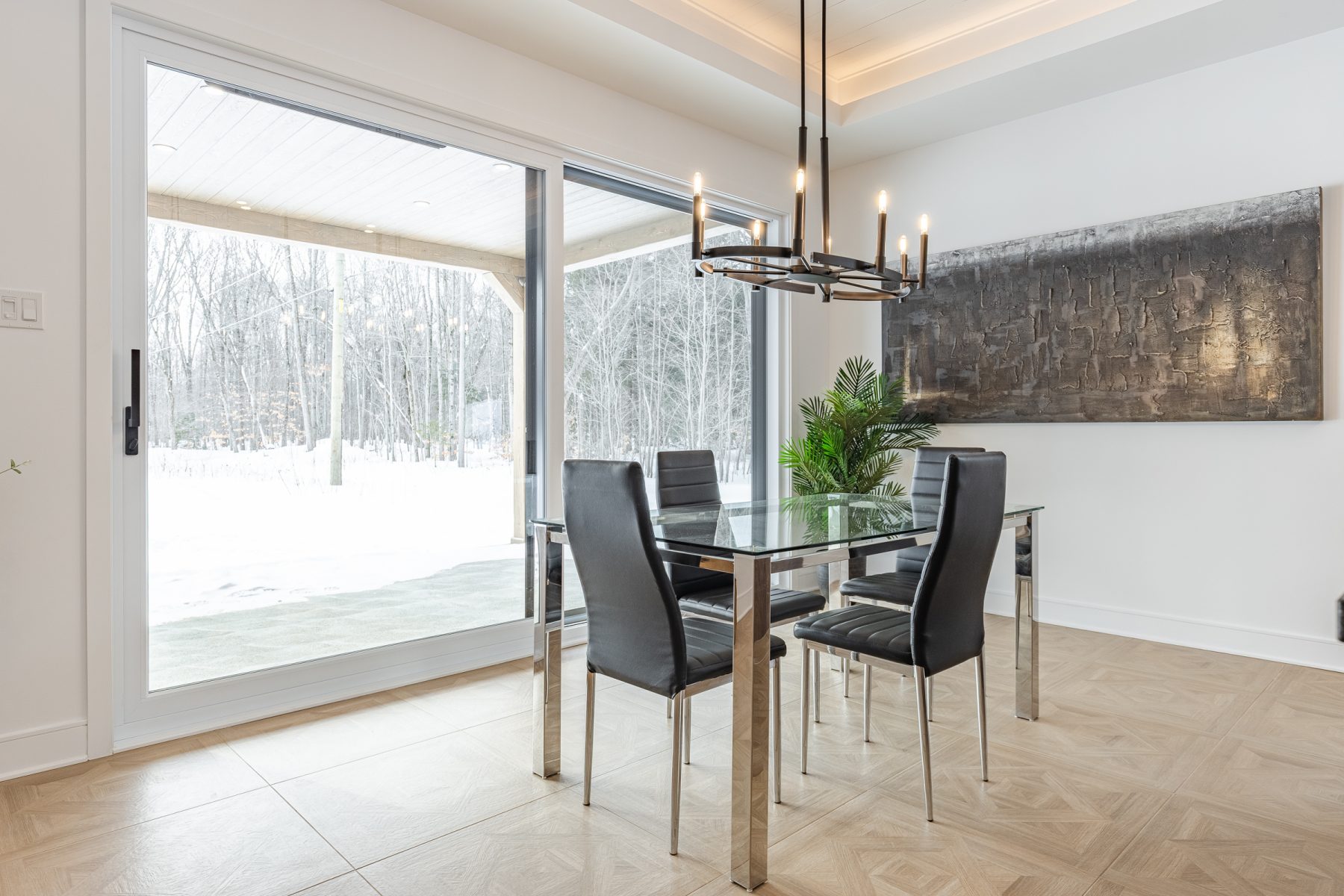 - Salle à manger 14,6 x 12 pi, mise en valeur par un luminaire