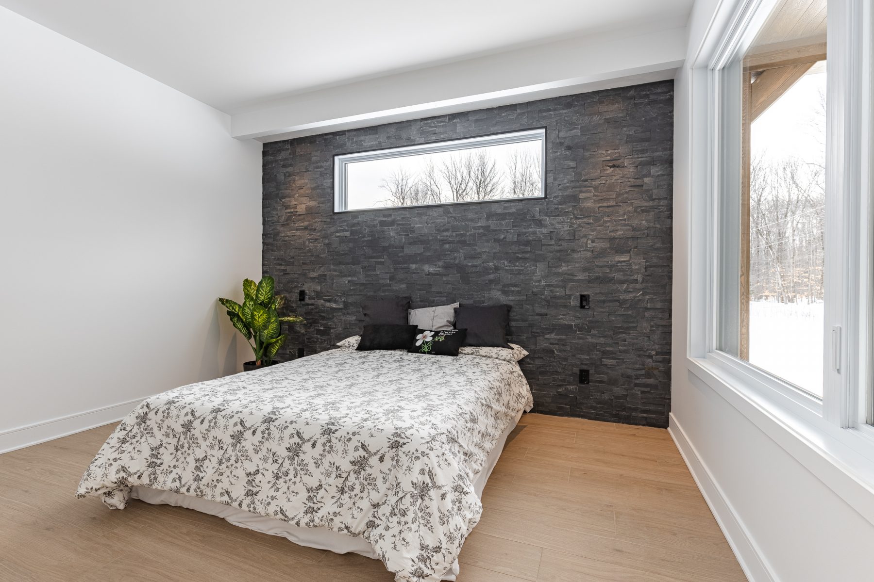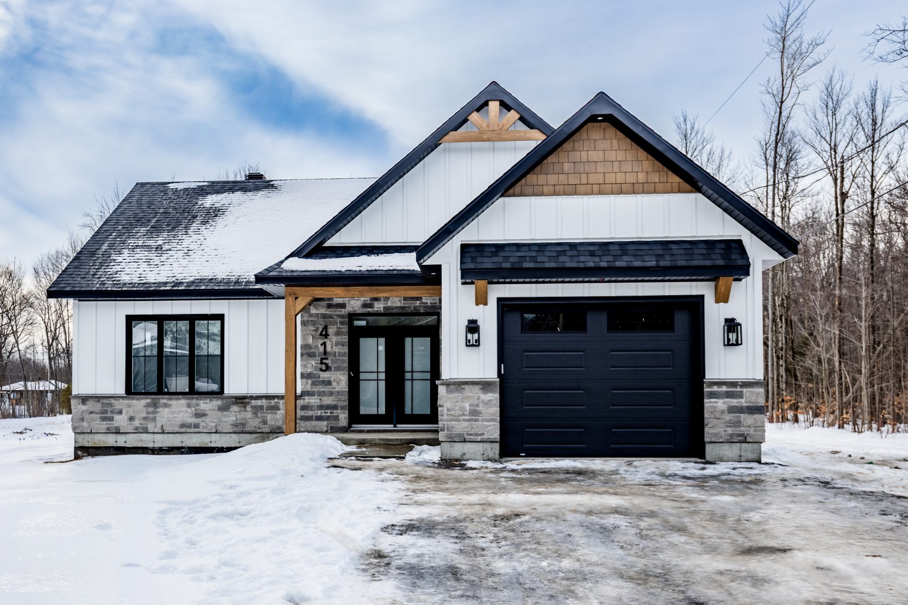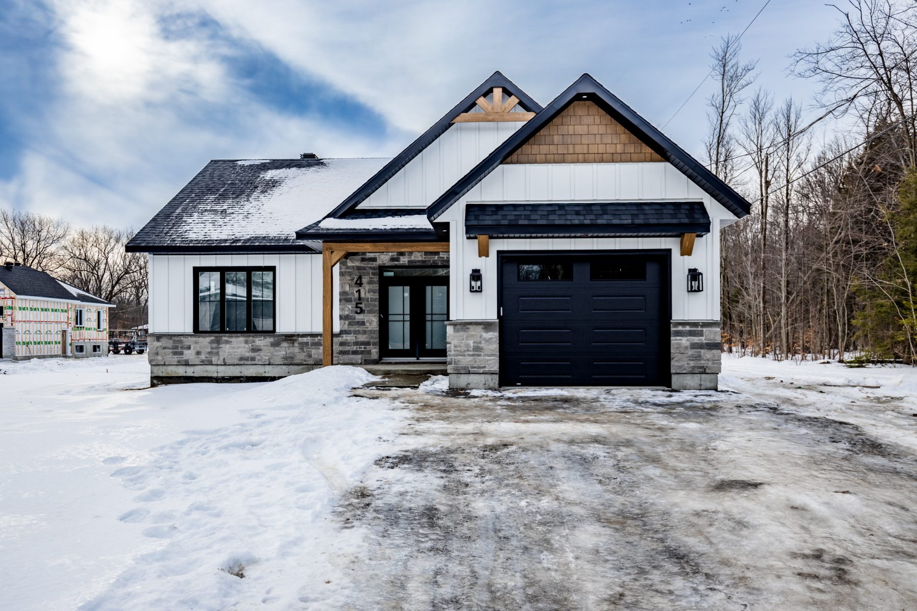 - Revêtement extérieur en pierre et CanExel avec boiseries