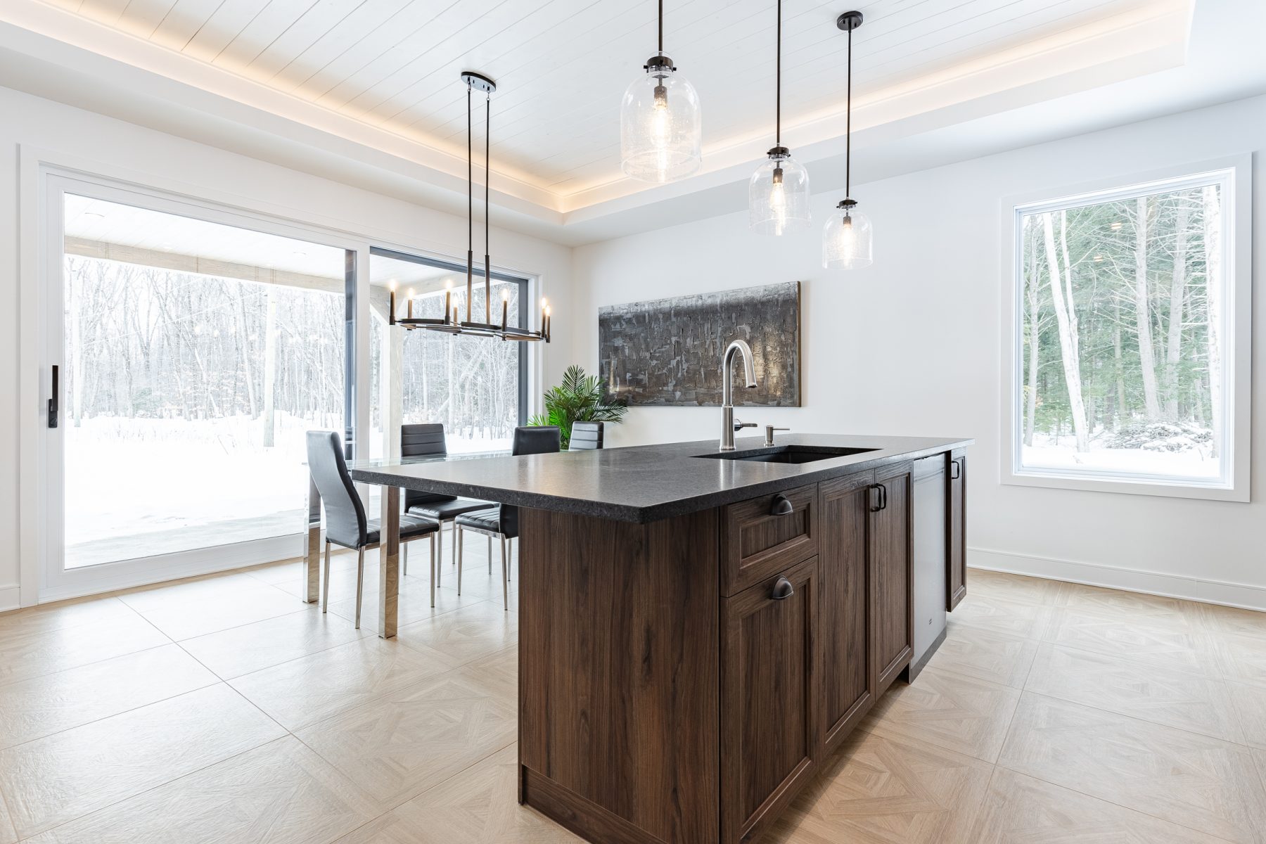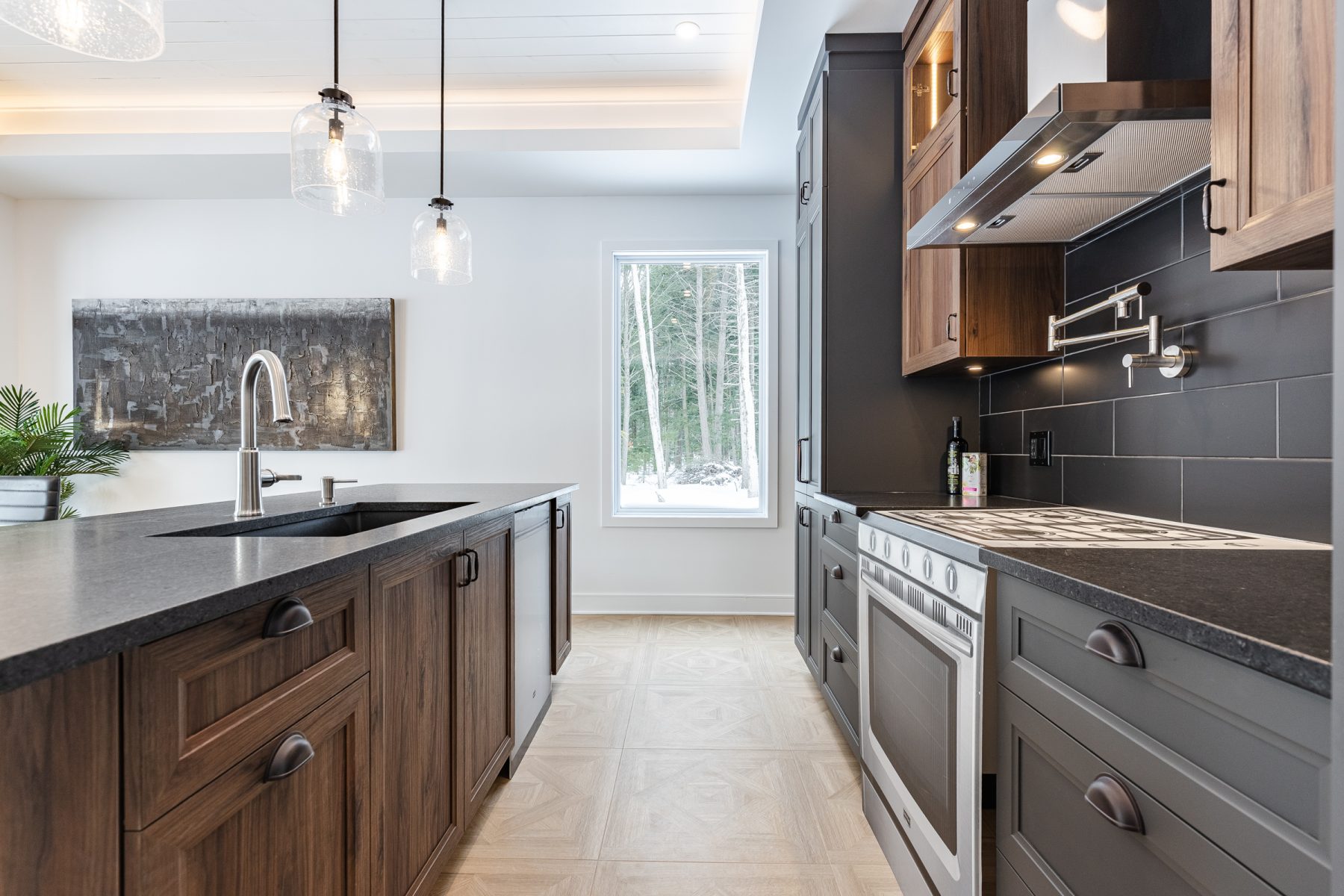 - Cuisine 15 x 11 pi avec îlot de 3,6 x 10 pi et comptoirs de quartz